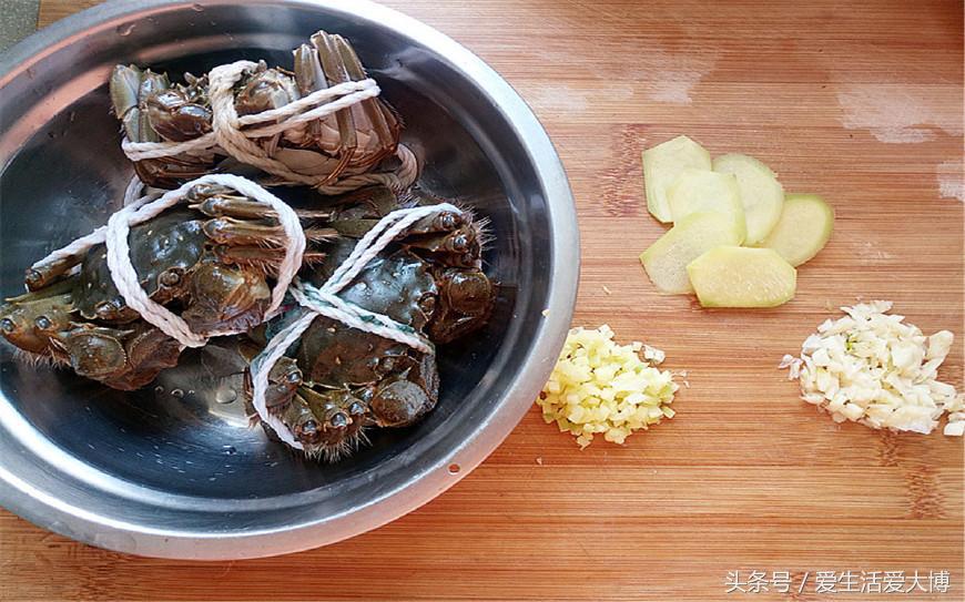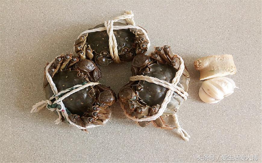第一步:准备好食材:大闸蟹、蒜瓣、生姜。