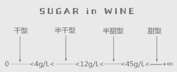 按照含糖量的分类也一定程度上考虑了葡萄酒的糖酸比例,例如干型葡萄酒如果总糖为9g/L,那么其总酸只能在7-11g/L之间。