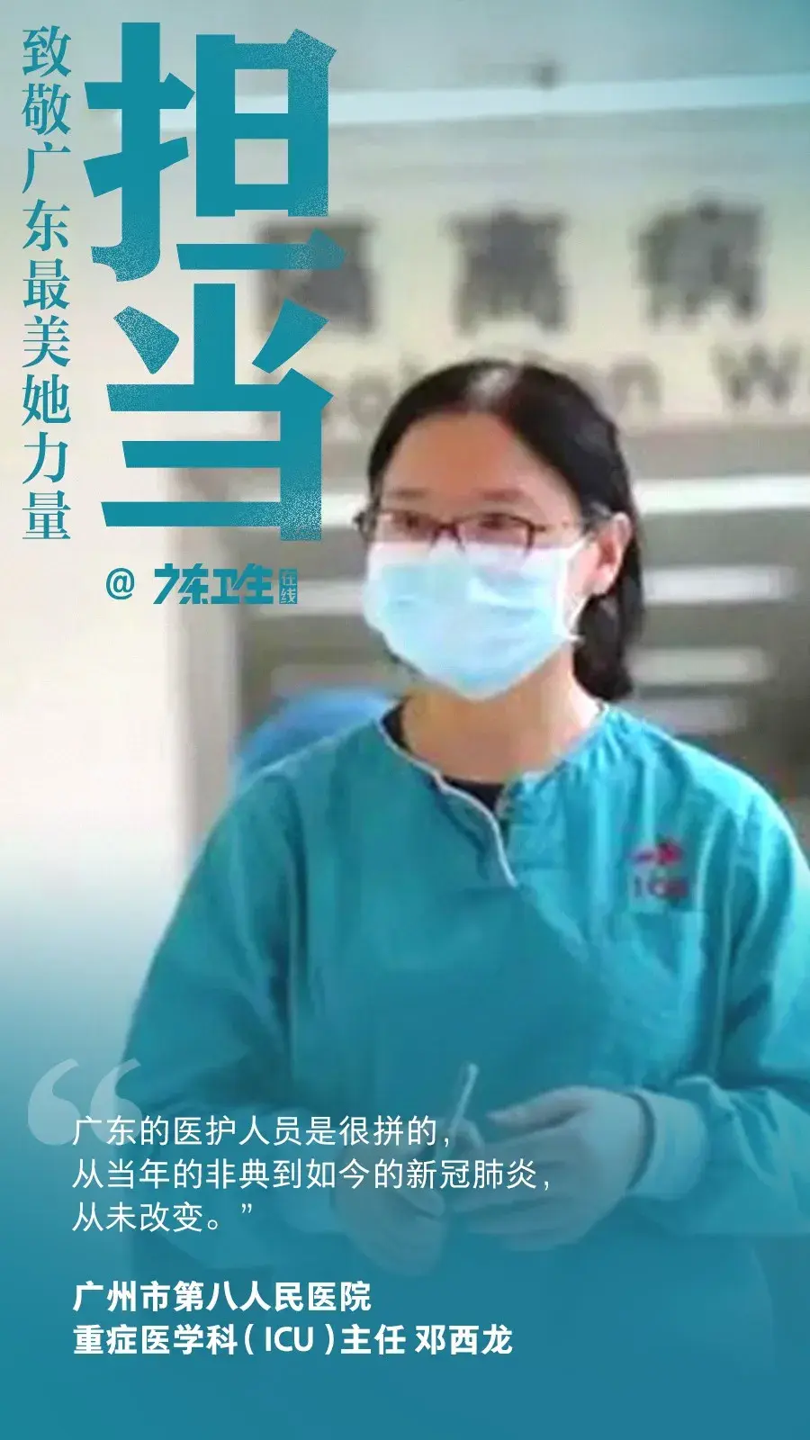 一旦出现严重传染病疫情,广州乃至全省很多病人都会被转诊到广州市第八人民医院。在这片中国南大门的战“疫”主战场上,邓西龙再次冲上一线。事实上,自收治第一例疑似新型冠状病毒患者以来,肩负重任的她便已开始了连轴转。如今,战斗仍在继续……