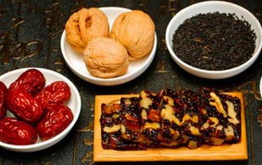 阿胶糕是用阿胶、核桃仁、黑芝麻、红枣、枸杞或其他可用于食品的食品为原料,添加冰糖、黄酒等辅料配伍熬制而成的。