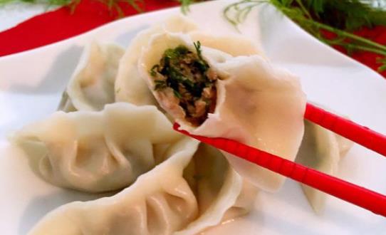 3、饺子粉中加入少许盐,加水揉成光滑柔软的面团,加盖静置一会备用(约30分钟);将面团分剂后擀成均匀大小的饺子皮;肉末撒上姜末拌匀,加入茴香拌匀,再淋上小勺香麻油后制成饺子馅;将馅包入饺子面皮中,捏紧封口,馅要多放,馅料饱满的饺子才够好吃;依次将所有的饺子包好,下锅煮熟即可。