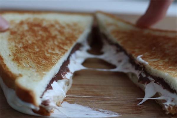 2.棉花糖+Nutella巧克力酱夹心吐司