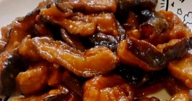 3.加入泡好的香菇,并倒入泡香菇的水。开大火等待开锅。锅开后转中小火关,加糖。然后盖子焖十分钟左右。可以再加点老抽上色,这个看个人喜好。