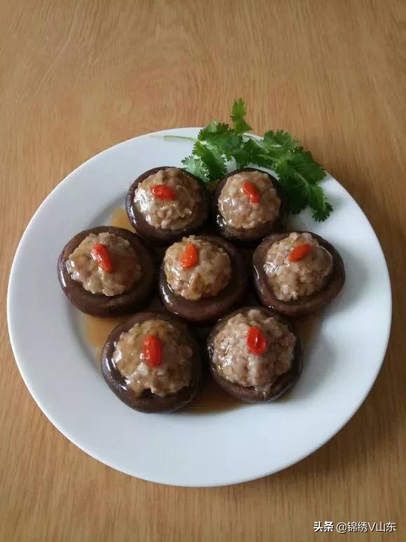 食材:香菇10朵(一盘的量),肉末150克,1个鸡蛋,胡萝卜。调味料:盐、十三香、蚝油、生抽、淀粉、葱花。