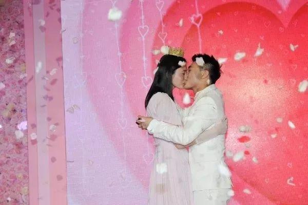 先是奚梦瑶蒙着眼睛、头戴王冠、穿着粉色公主裙,在好友陈学冬,和可爱公仔的带领下入场