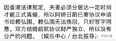 但根据香港法律,夫妻分居必须达到一定时间才能正式离婚,所以目前他俩只是签了分居协议。