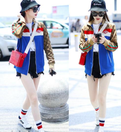 戚薇身穿白色短袖,下边搭配黑色牛仔短裤!装撞色系的外套十分的抢眼!运动风有瞬间减龄!