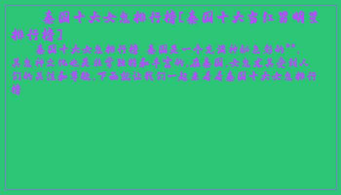泰国是一个充满神秘色彩的**,其鬼神文化也是非常独特和丰富的。在泰国,女鬼尤其受到人们的关注和尊敬。下面就让我们一起来看看泰国十大女鬼排行榜吧!