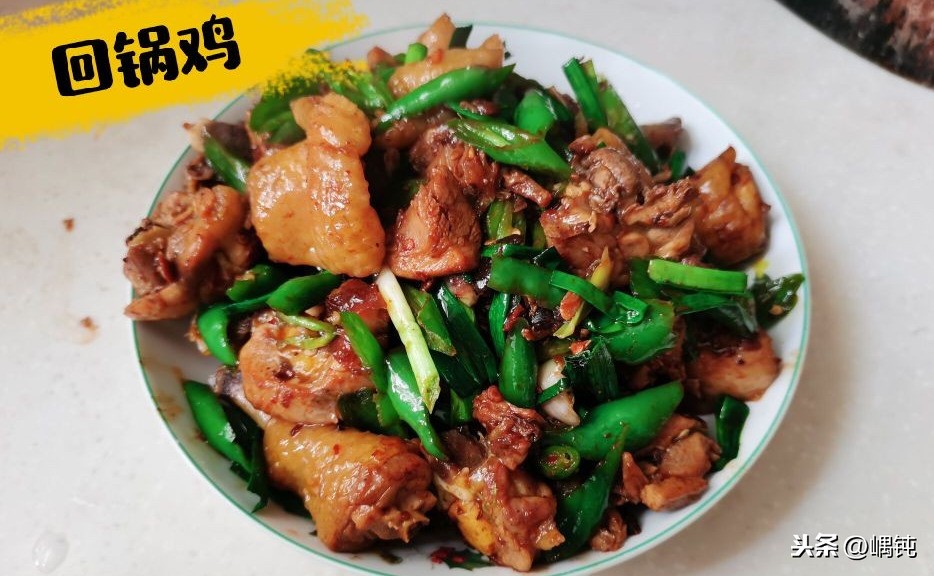 回锅鸡,顾名思义,回锅肉中的猪肉用鸡肉取代,确切地说,是将猪肉片换成了鸡块。