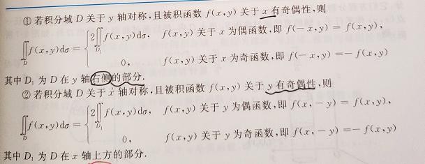有时在计算二重积分时候需要利用被积函数的奇偶性和积分区域的对称性,常用的结论有以下两条:
