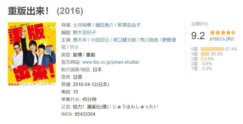 《重版出来》/2016/豆瓣9.2