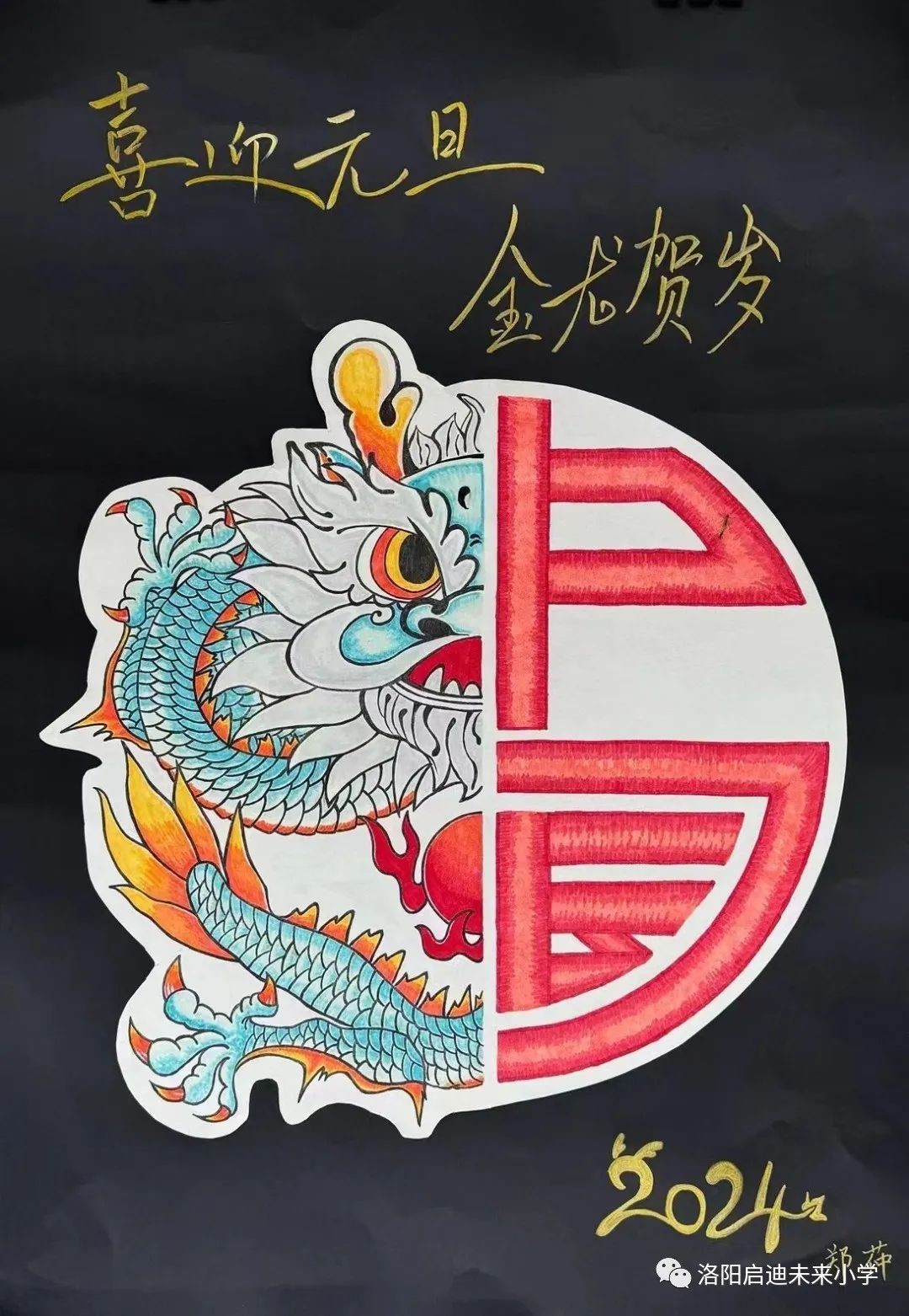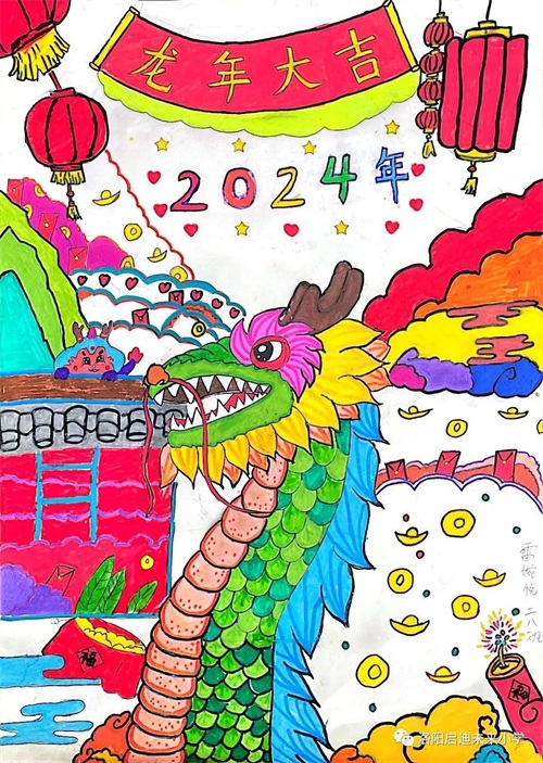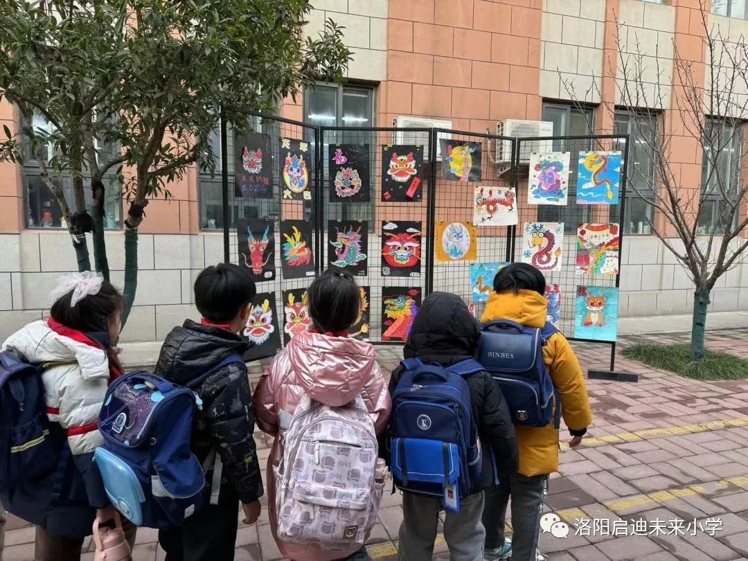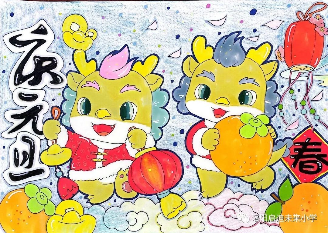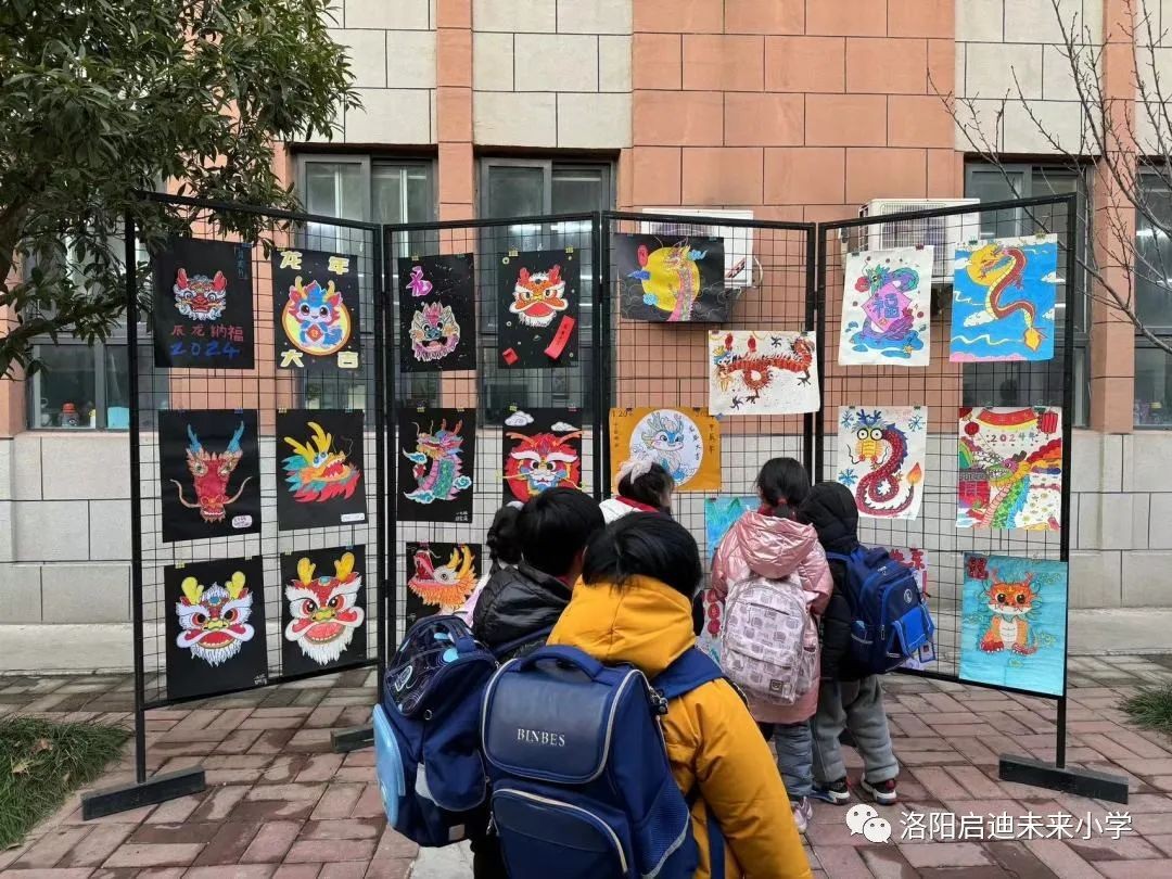 元旦即将到来,洛阳市未来小学举办了一场别开生面的元旦画展,主题为“龙腾新纪元 欣欣向未来”。这场画展展示了小学生们的创造力和艺术才华,为新年的到来增添了一抹绚丽的色彩。