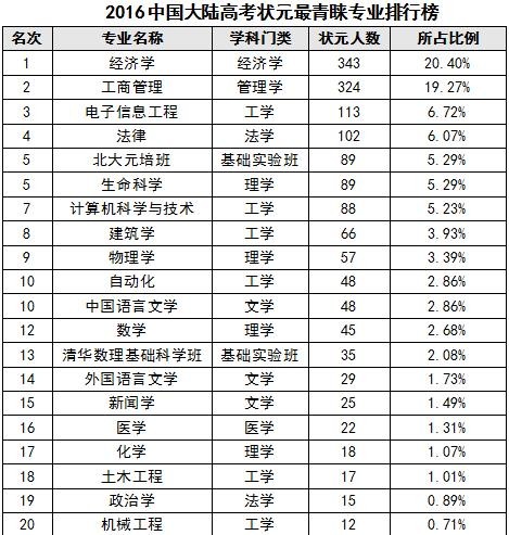 最值得高考状元青睐的专业排行