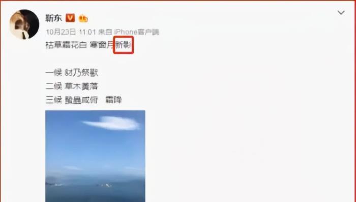 2018年10月23日,靳东在社交平台发布了一条非常“知性”的动态,并引用陆游《霜月》里的名句“枯草霜花白,寒窗月影新”,却错将“影新”写成了“新影”;还自创“诺贝尔数学奖”……