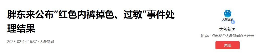 大象新闻 2025-02-14——《胖东来公布“红色内裤掉色、过敏”事件处理结果》