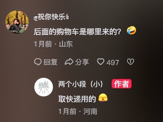 这一细节引发了更多人的关注,怀疑女顾客是否有过其他不当行为,因为在她的一条视频中,可以清晰的看到一辆超市的购物车,网友就开始怀疑是她从胖东来“顺走的”,而这名女顾客仅仅只是表示这车是用来装快递的。