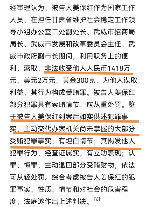 姜保红不仅恋权,也非常贪财好色。在审查期间,姜保红深知坦白从宽的政策,为了减轻刑法,主动交待了很多鲜为人知的问题。