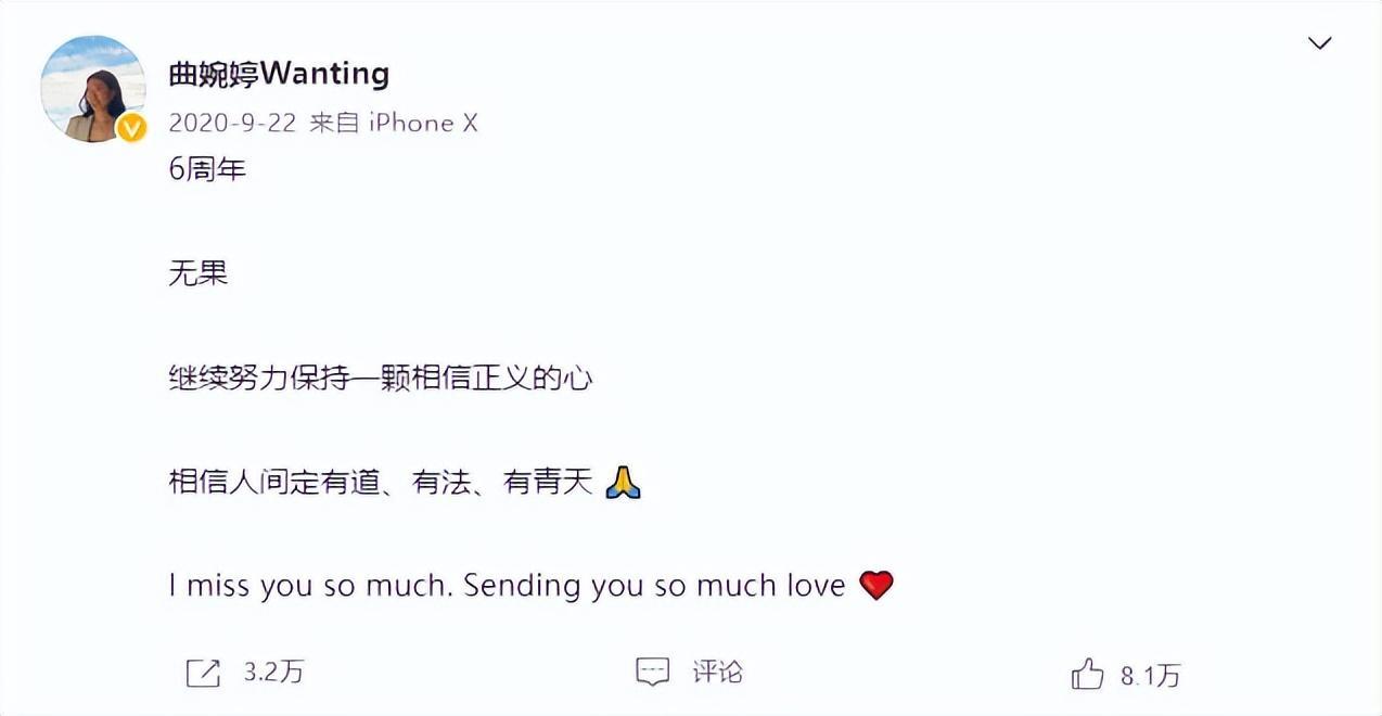 她每年固定在微博上为自己的母亲喊冤,且常常宣称自己“相信司法公正。”在曲婉婷的微博里,她似乎认为自己的母亲是被冤枉的,相信法律会给母亲一个“正义”的结果,但除了在网上发声之外,曲婉婷可以说对自己的母亲“做出了除帮助以外的一切支持”,对待这种行为网上还出现了一个新名词:“云戴孝”。