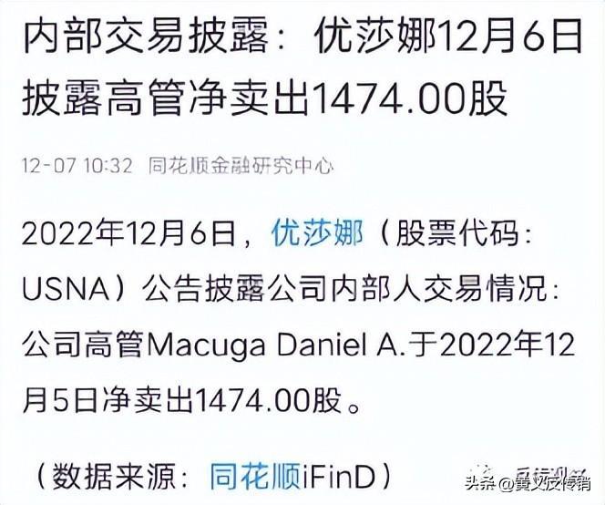 2022年由于疫情的影响,中国的疫情防控政策收紧,不但对葆婴的业务产生了巨大的影响,更是导致USANA在美国股市上的股价腰斩。就连USANA公司的高管,都在不断地抛售其所持有的USANA股票。