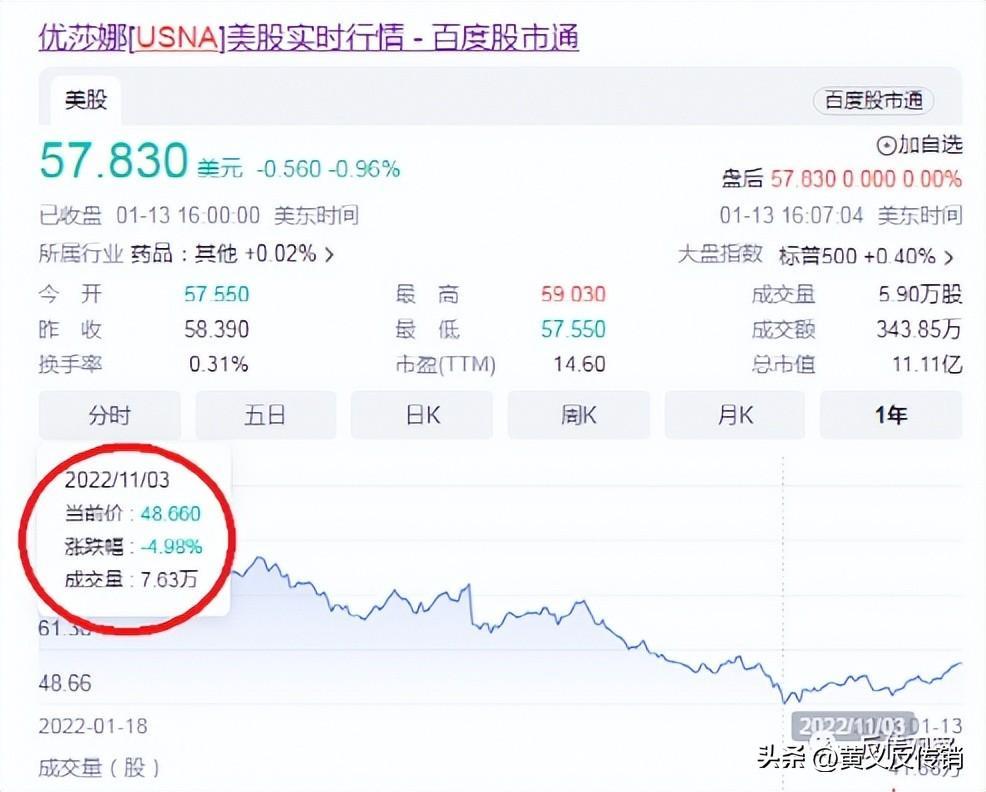 2022年中,由于中国疫情的影响,USANA的股价从1月18日的99.21美元,跌倒11月3日的48.66美元,跌幅超过一半。