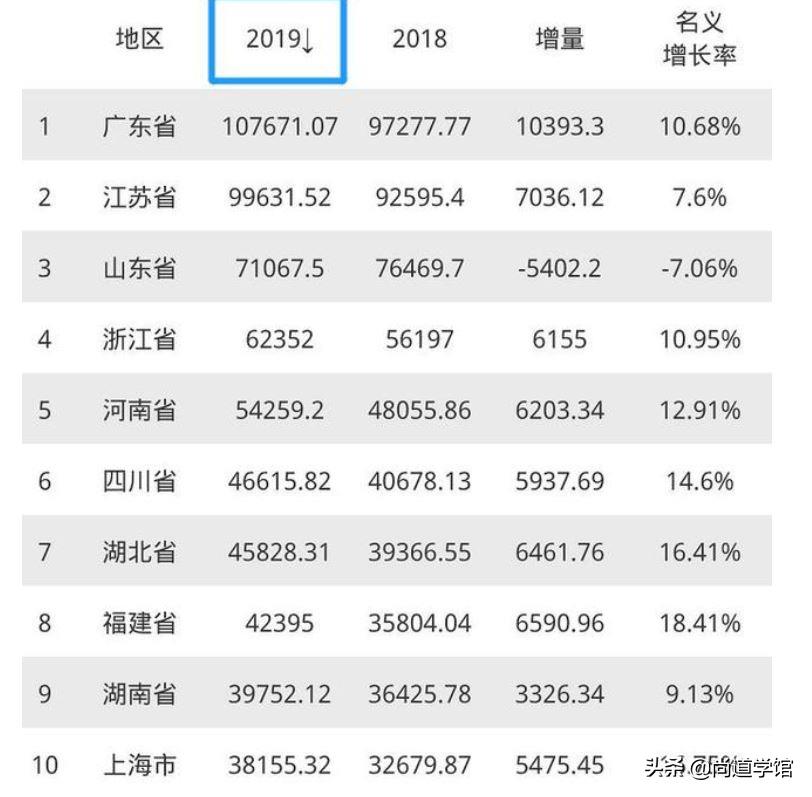 之前我们还说到了青岛与深圳,两者同理,青岛GDP在山东省内排名第一,山东作为排名仅次广东、江苏的经济大省,失去了青岛会怎么样,这里我们拿2019年度的GDP 举例,请看下面两张图。