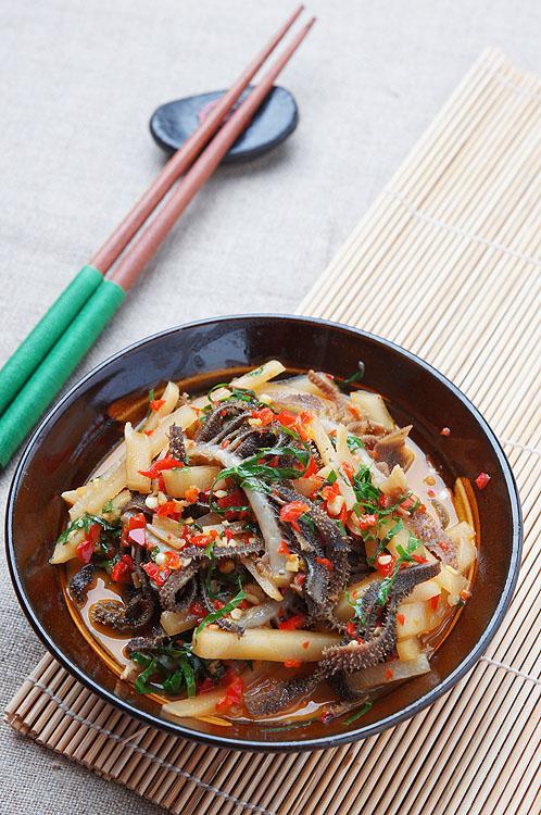 凉拌菜,尤其是凉拌的肉菜,醋不能放多,吃的时候吃不出来酸味最好。其他调料可以根据自己的口味放,花椒油很麻,不能放太多。