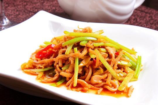 1食材汇总,牛肚洗净,芹菜摘好洗净切段,姜切碎,蒜切片,辣椒切段。 2锅中倒油,油热爆香姜蒜。 3放入牛肚翻炒。 4倒入料酒。 5倒入生抽。 6放入芹菜、辣椒翻炒2分钟。 7倒胡椒粉和盐翻炒均匀出锅。