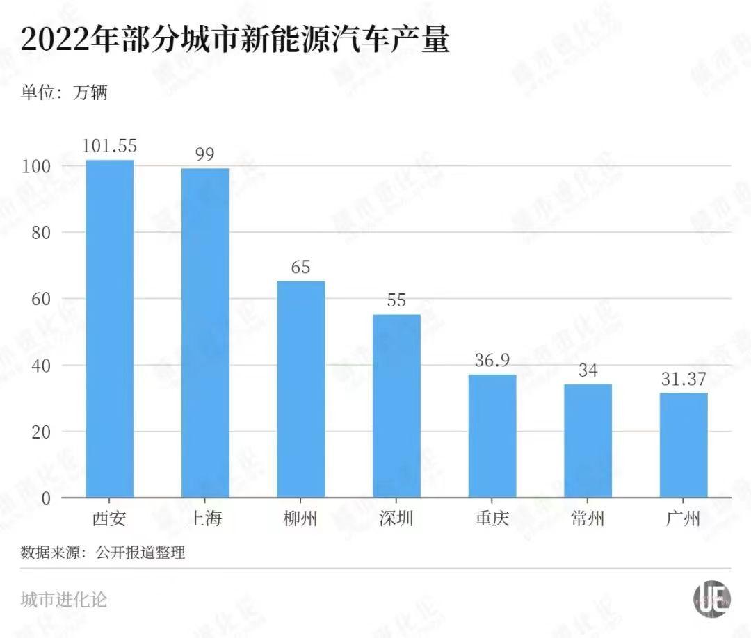 此外,据媒体公开报道,2022年,常州新能源汽车产量全国排名第六。除了广西柳州,其他排名靠前的都是省会和直辖市。