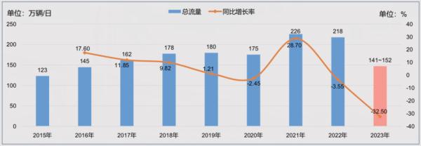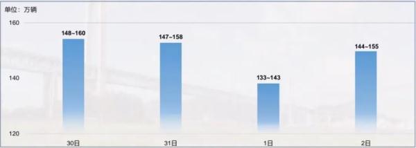 元旦期间,各日流量总体均衡,且处于稳定运行态势。流量最高日预计出现在假日前一天,即12月30日,但出口流量将会低于160万辆,约为148万~160万辆。与往年元旦相比,最高日流量下降45%左右。
