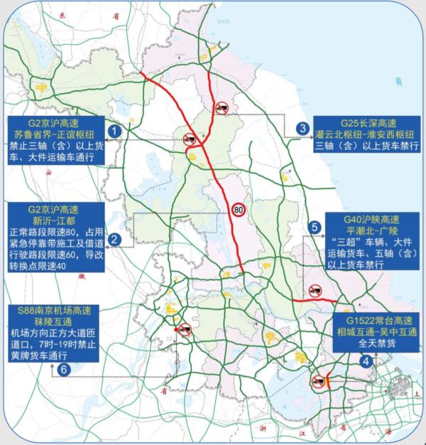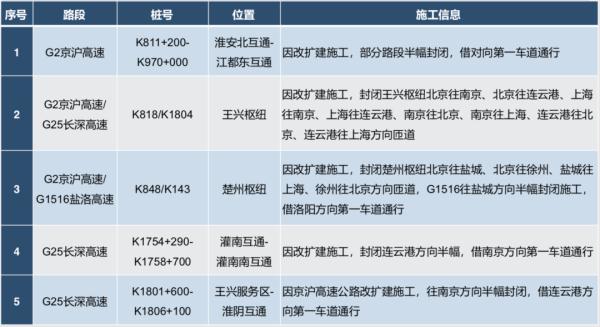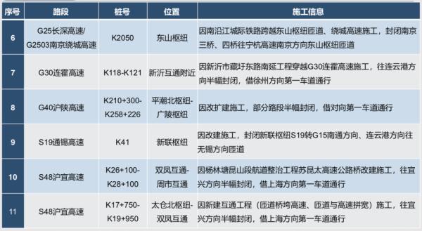 元旦期间,省内有G2京沪高速、G40沪陕高速等11处高速公路施工路段、节点,请注意现场交通标志提示!