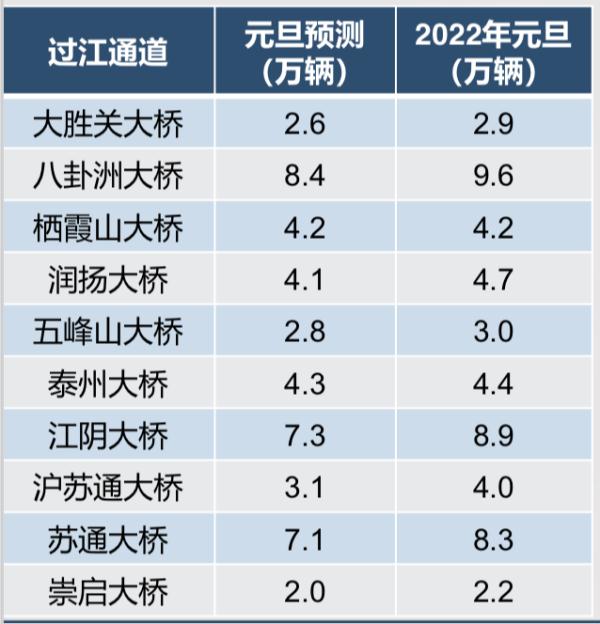 元旦期间高速公路过江通道预测流量情况