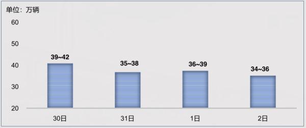 受疫情影响,预计元旦期间客车流量大幅下降,但货车流量仍会保持相对稳定,基本维持在35万~40万辆左右。节日前一天(12月30日)预计流量较高,接近42万辆左右。
