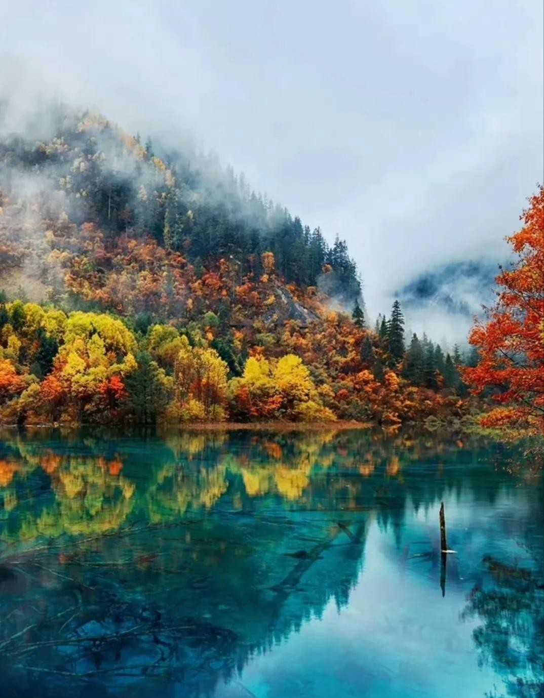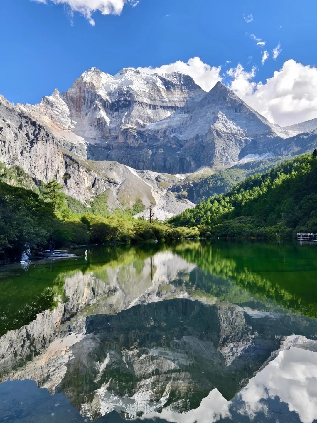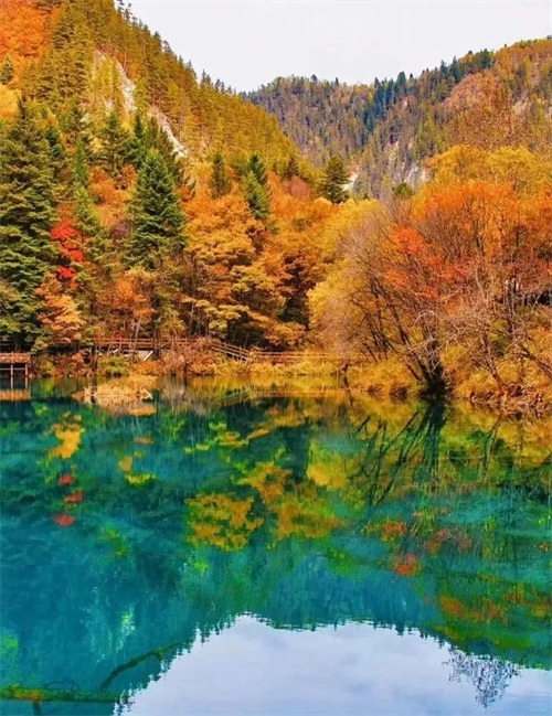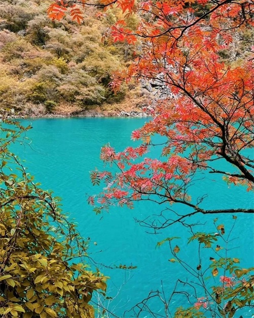 这里不仅有险峻的山景,还有清澈的湖泊,秋季时,雪山与彩林交织,美景如画。