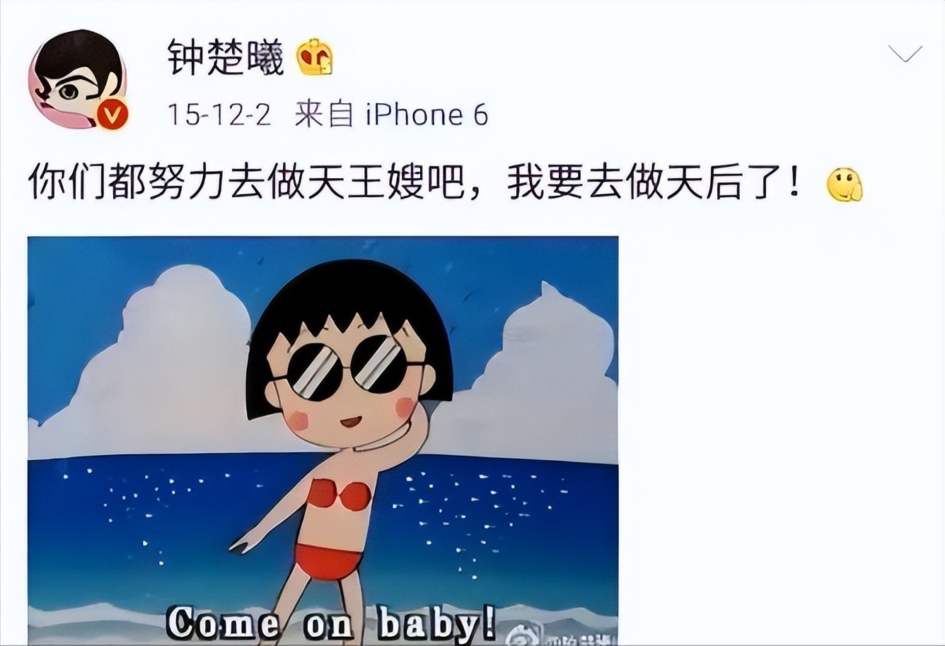 前有“星女郎”林允后有“冯女郎”钟楚曦,一个努力前行,一个野心充斥全身,钟楚曦得到华谊老总的重用以后整个人都处于“飘飘然”的状态,甚至发微博喊话“我要去当天后”,要知道那时候她还是一个籍籍无名的“小糊卡”,她凭什么这么有底气直言自己当“天后”?
