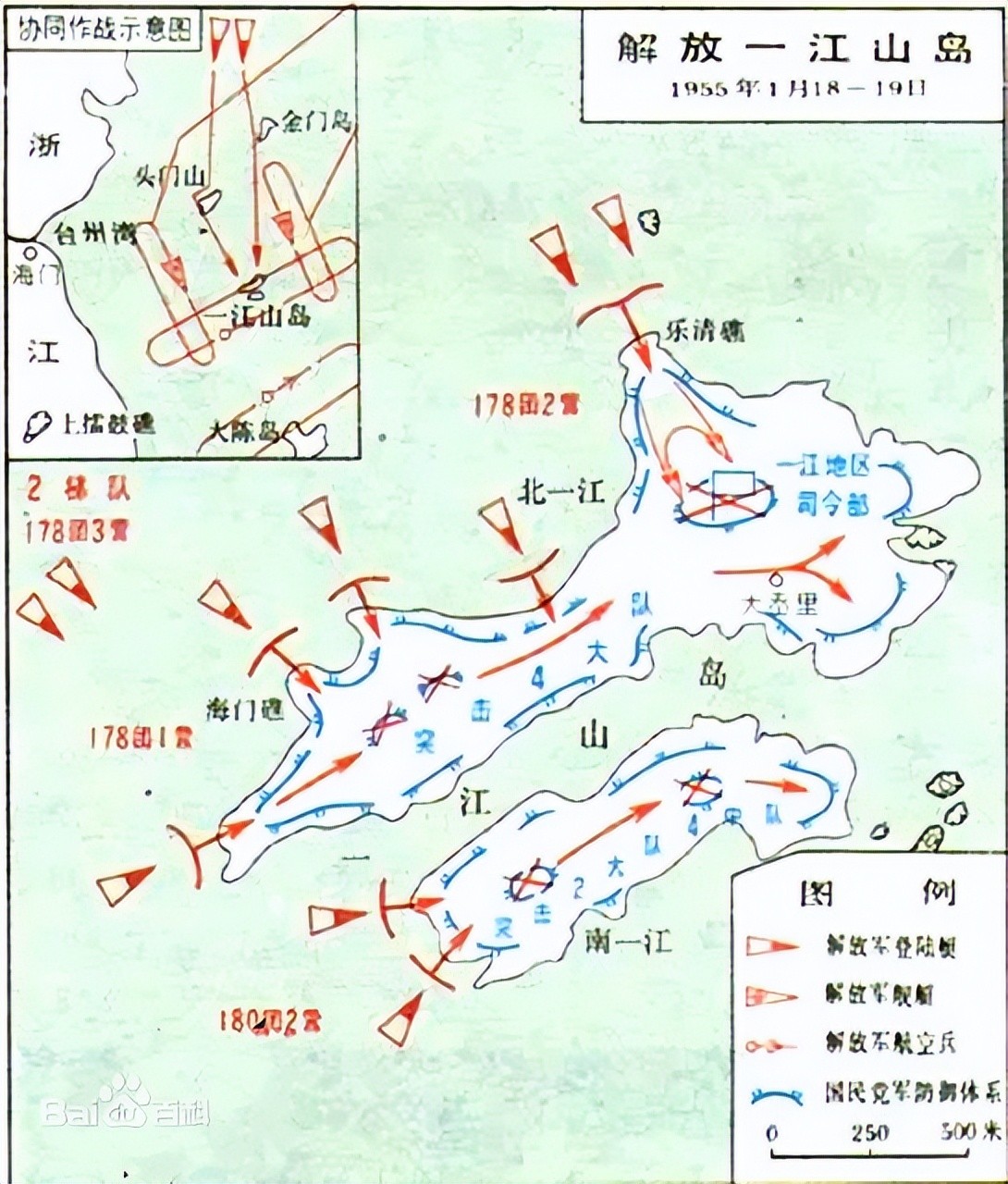 1955年1月18日8时,在华东军区参谋长张爱萍的统一指挥下,我军集中了约1万人的陆、海、空兵力发起一江山岛战役。这次战役是人民解放军首次陆、海、空三军的协同作战。也是世界军事史上第一次在白天发起的三军登陆作战。