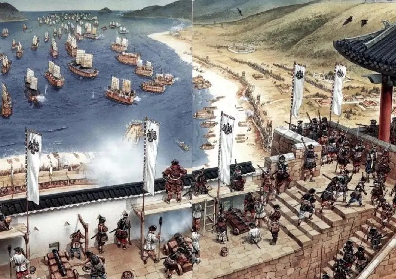 陈璘敏锐地察觉到倭寇动向,随即与邓子龙以及朝鲜名将李舜臣率兵进击。虽然倭寇战船被击毁不少,溺亡者数以万计,但是邓子龙、李舜臣不幸牺牲。与此同时,另一位抗倭将领刘綎也率部奋勇攻占行长,直入顺天大城,陈璘看准时机,采取两面夹击,击毁焚烧倭寇战船百余艘。倭寇首领石曼子率兵向西增援,陈璘等到倭寇战船行驶至半路中,随即率战船截杀,我大明战船炮火犀利,将石曼子击败,并击毙倭寇300多人。