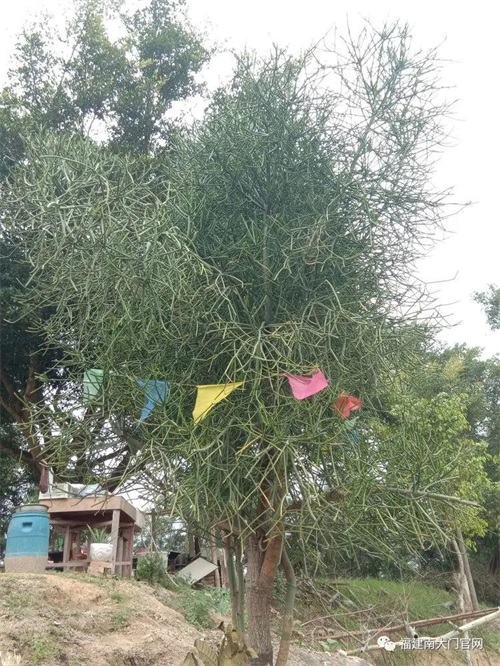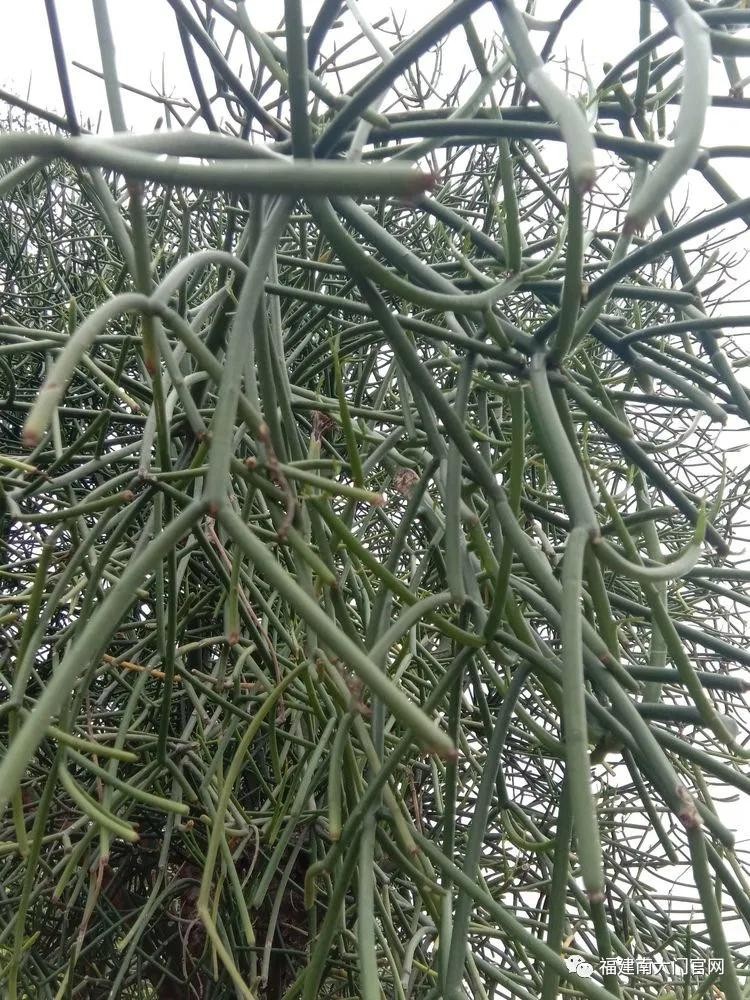仙公庙南侧山畔的菜园。一株形体奇异,惹人注目的树木。老者介绍,这种树属外来的品种,有好多个名字。上前细看,浑身青绿色,条圆状枝条,似曾相识了。