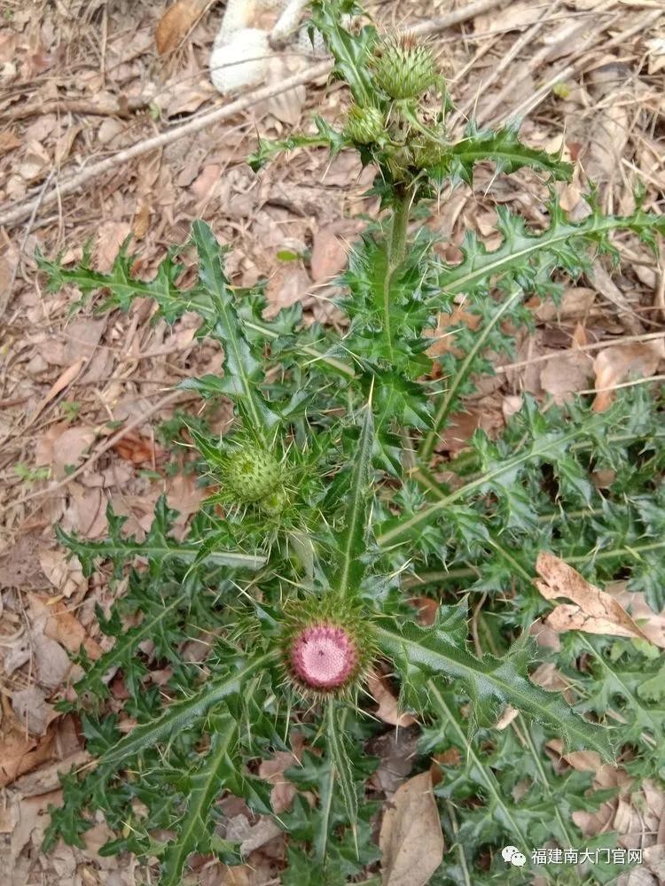 石头旁边散布的蓟类植物,别名刺儿花,土名鸭母毒刺,常见于乡间墓头堆坡地。