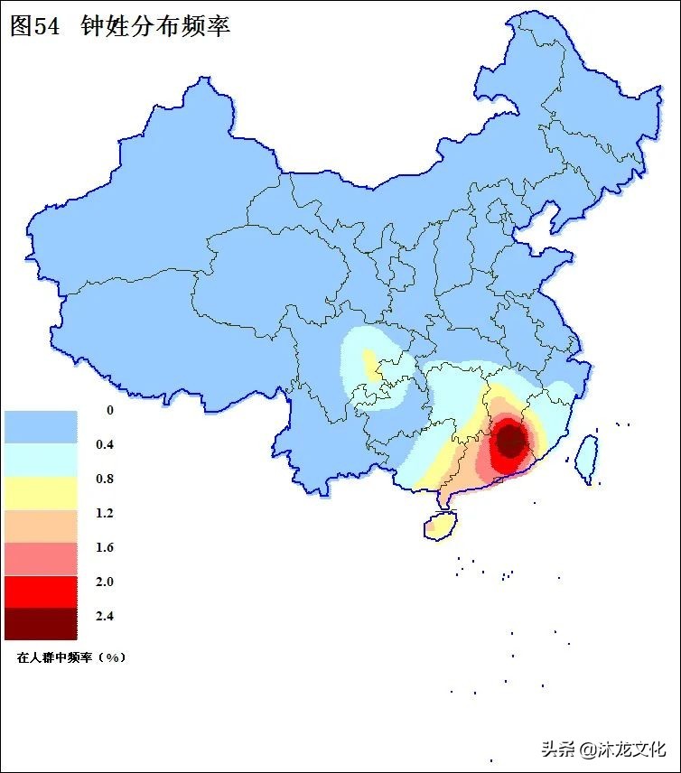 钟姓是中国人口最多的第五十四位姓氏,在两广、湘赣、四川等地区比较常见。当今钟姓人群大约占了全国人口的0.4%,总人口大约在533万。