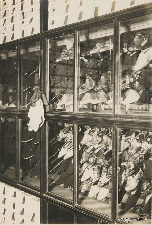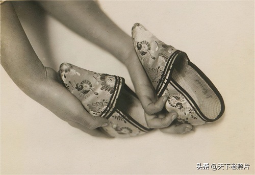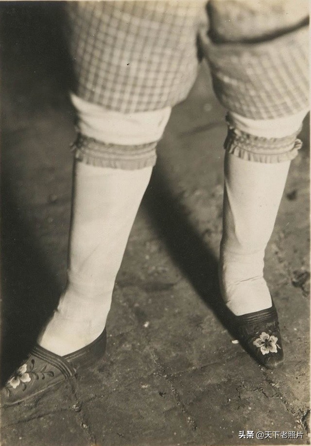 在这组照片中,给我们展示了30年代的小脚女子的脚变形了何等模样,以及她们是平时如何打理自己的脚,和穿什么样的袜子和鞋子。