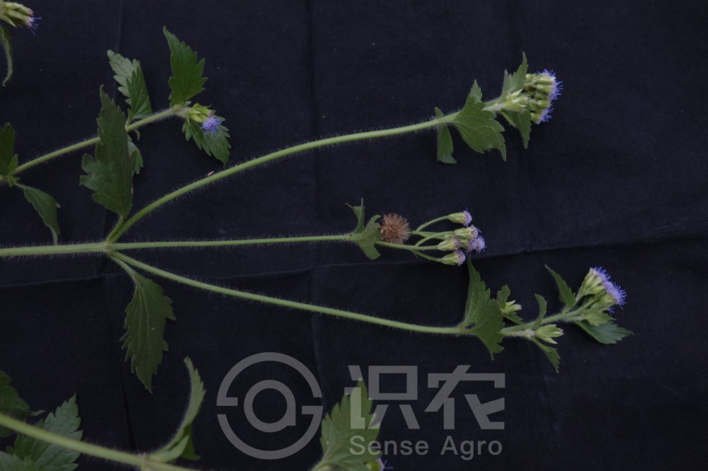 植株高 0.3-1m。茎单一或于下部分枝,散生贴伏的短柔毛和腺状短柔毛。叶对生,卵形或长椭圆状卵形,长 1.5-5.5cm,宽 1-3.5cm,具 3 出脉或不明显的 5 出脉,叶柄长 1-2cm;上部叶较小,通常披针形。头状花序有长梗,排成疏松的伞房花序,花序梗的毛长约 0.2mm;总苞半球形或宽钟状;直径3-6mm;小花 25-30,蓝紫色。瘦果黑色或黑褐色,长1-1.5mm,具3-5棱。
