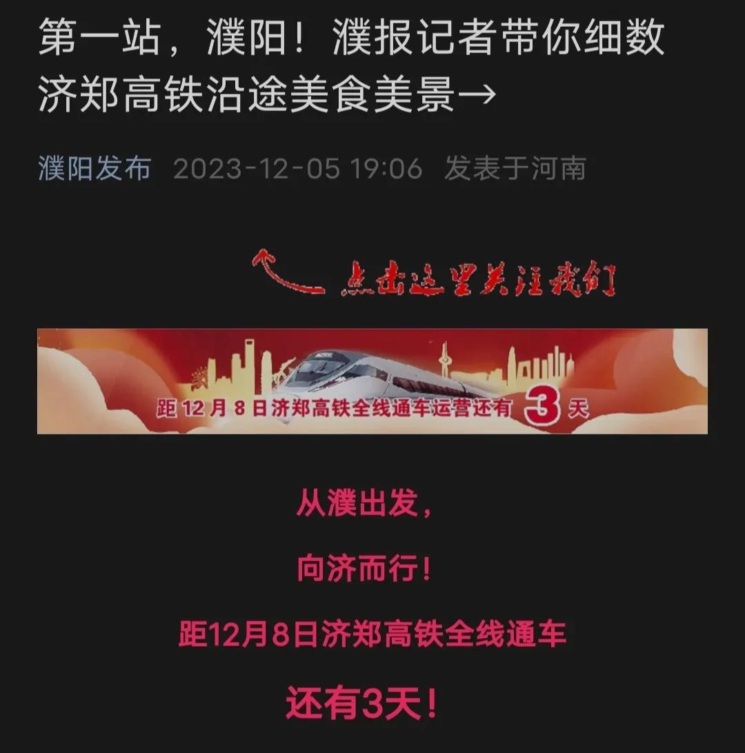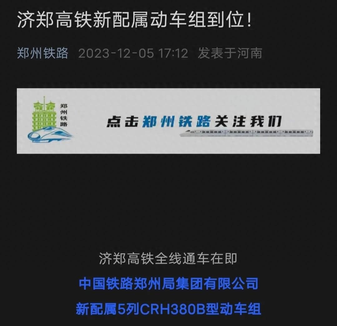 首先,河南方面,郑州局方面今日发文,济郑高铁新配动车组已到位。沿线濮阳市官媒多日来已做倒计时宣传,这一点应该不会假,毕竟是濮阳市政府官方发布。
