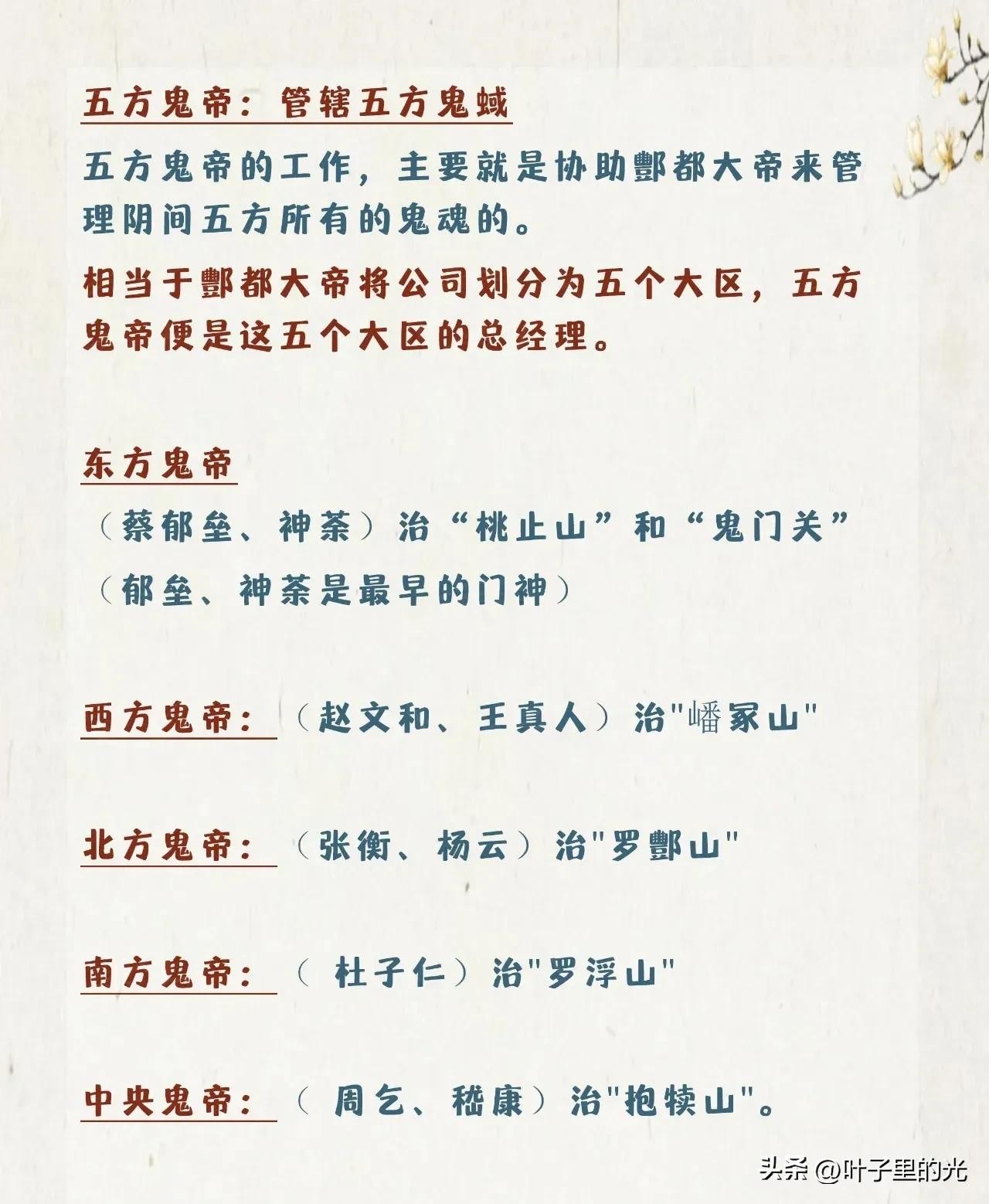 2、五方鬼帝:协助酆都大帝管理阴间五方所有鬼魂。