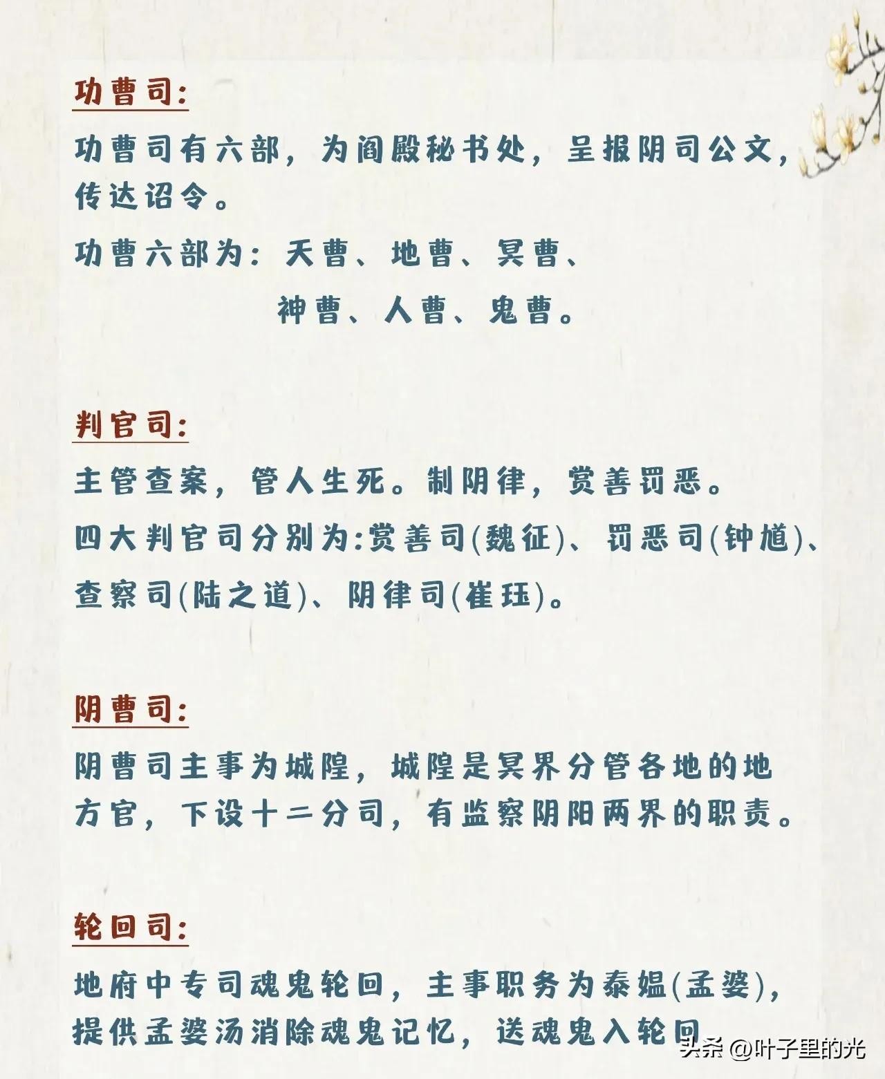 4、功曹司:为阎罗殿秘书处,呈报阴司公文,传达诏令。