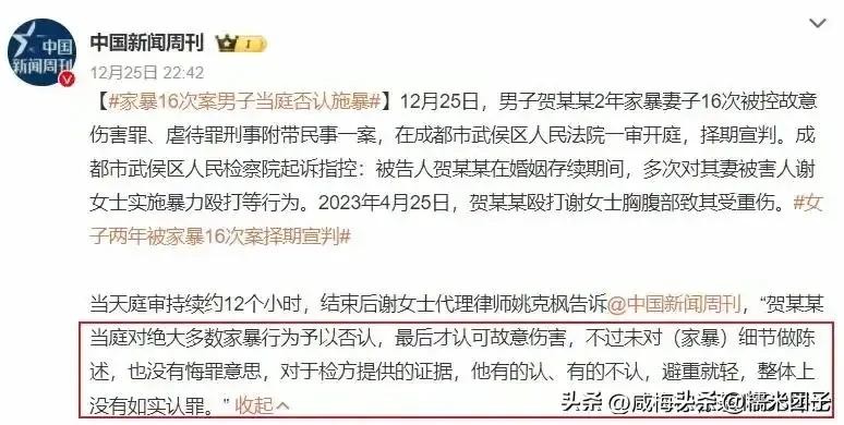 2024年12月25日和26日,成都武侯区法院对该案件进行了公开开庭审理,谢女士作为原告出庭作证,她详细讲述了自己在婚姻生活中的遭遇,以及受到家暴后的身心伤害。