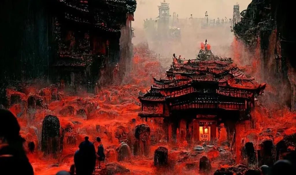 在民间传说中,酆都的鬼城形象非常丰富。传说中,酆都的大门前有一只巨大的石狮子,它的眼睛能够看到所有的鬼魂。在城内,有各种不同的地狱和阎王殿,每个阎王都有自己管辖的区域和职责。在酆都的深处,还有一个神秘的湖泊,被称为“忘川”,据说喝了忘川的水会使人忘记前世的记忆。
