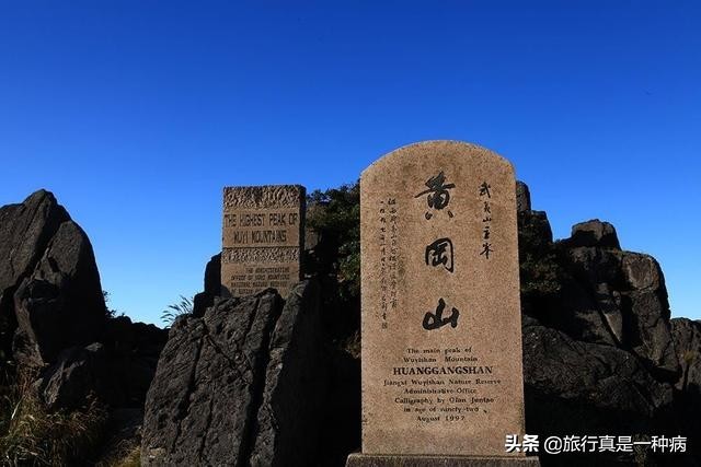 山顶有福建省和江西省的界碑,以及福建省于1990年所立的“武夷第一峰”的石碑,江西省于1997年立的“黄冈山”的石碑。所以现在的武夷山是归福建和江西共管的,大家从福建南平、邵武或江西的上饶都是可以进出武夷山的。