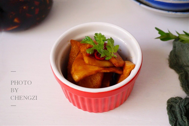 在众多小咸菜中,我家尤其喜欢腌萝卜,婆婆这个用了20年的老方法,萝卜切一切先加点盐腌出水了,再加经过煮制的调味料搅拌均匀,腌制一夜就可以吃了,酸辣爽口特别过瘾,比吃肉都香,而且这样腌制的萝卜,不会发霉,储存半年也不坏。