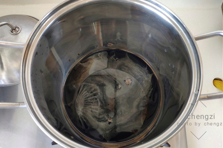 4、小锅中加入一些生抽、香醋、老抽,这三样调料的比例为3:2:1,再加入盐和白糖各2小勺,加入一点清水搅拌均匀,烧开后煮1分钟再晾凉备用。