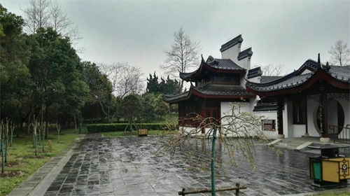 3月18号下午,当我们一脚跨进被春雨洗过的堤角公园,就被这眼前的江南园林景色所迷倒。一湖碧水包围在公园中央,岸柳成行,石径小桥和亭台楼阁点缀在湖畔周围,由于连续下了几天雨,气温稍低,赏春的游人较少,烟雨繁花掩映中的堤角公园呈现给我们的是一种静怡、葱绿的美。